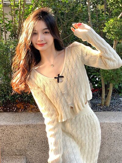 2024 秋のファッション フレンチレトロ ニットセーター ジャージ ジャージ パーカー セットアップ レディース スウェット上下セット 2点セット