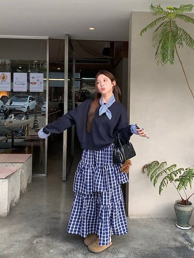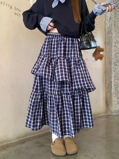 レトロ レディースファッション 2024秋新作デザイン感 チェック パーカー+スカート セットアップ 2点セット