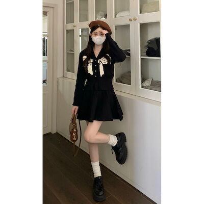 レディースファッションデザイン感 2024秋冬新作 優しさ風Vネックトップス ニットカーディガン +スカート セットアップ 通勤ins 大きいサイズ 2点セット