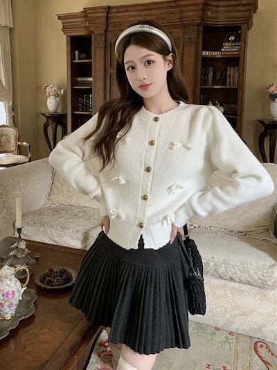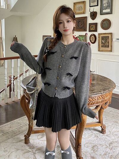 レディースファッションデザイン感 2024秋冬新作 ニットカーディガン +プリーツスカート セットアップ 通勤ins 大きいサイズ 2点セット