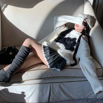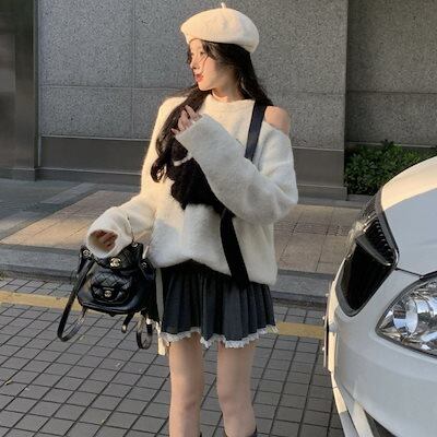 レディースファッション 肩出しデザイン感 2024秋冬新作 アウターセーター+スカート セットアップ 通勤ins ゆったり 2点セット
