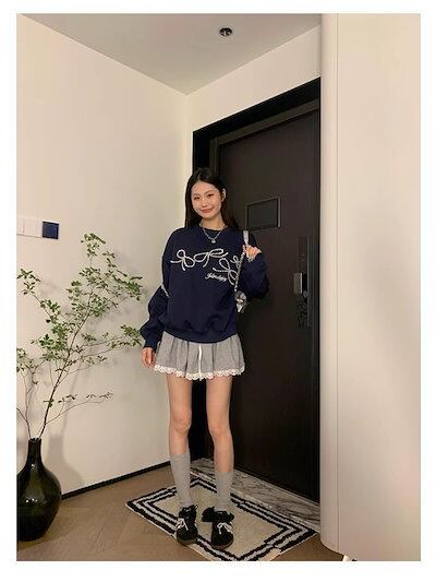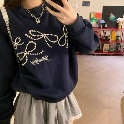 2024秋冬ファッションのパーカー レディース アメリカ 甘いリボン ゆったり プリント 長袖シャツトップス Tシャツ