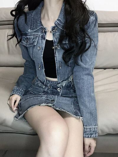 韓国 ファション デニム レトロ 小柄 セットアップ レディース スウェット上下セット スカート 2点セット