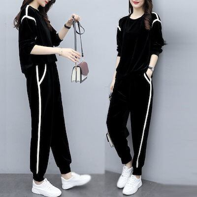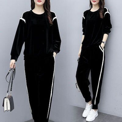 2024 セットアップ ファッションカジュアル ゆったり 2点セット ベルベット スウェット上下セット