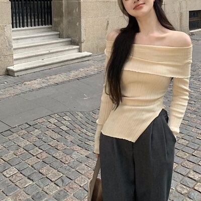 2024 ファッション ニット長袖 ベーシックニットブラック セクシー ニットウェ