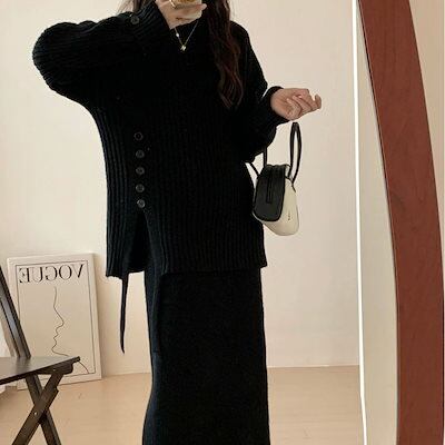 秋冬の新作 ドレス 軽やかな大人 ニット+スカート セットアップ けだるさ風 2点セット レディースファッション