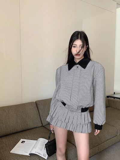 2024 ファッション ジャージ アメリカンレトロ チェックジャケット カジュアル パーカー セットアップ レディース スウェット上下セット 2点セット