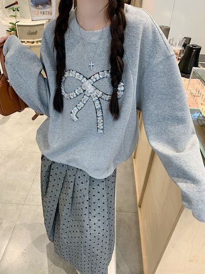 通勤スーツ 2024秋新作デザイン感 丸首グレー セットアップ 2点セット レディースファッション
