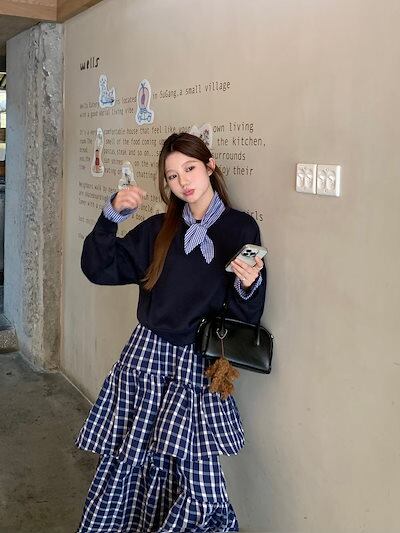 レトロ レディースファッション 2024秋新作デザイン感 チェック パーカー+スカート セットアップ 2点セット