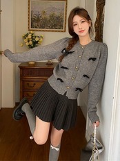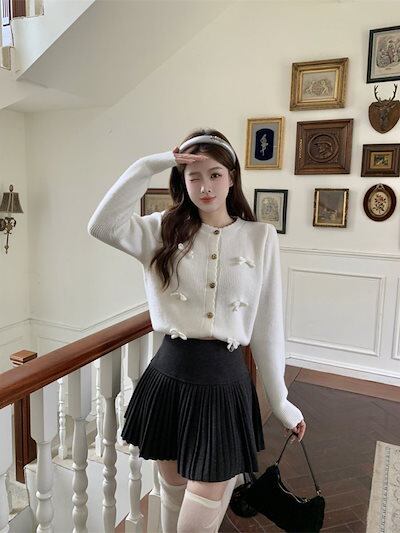 レディースファッションデザイン感 2024秋冬新作 ニットカーディガン +プリーツスカート セットアップ 通勤ins 大きいサイズ 2点セット