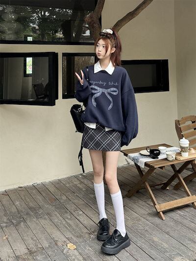 2024秋のパーカー レディース プリント丸首 トップス ゆったり Tシャツ