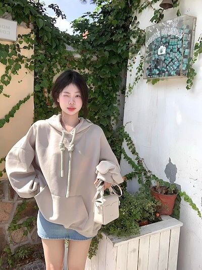 2024早秋の新ファッションピンクのドローキャップのパーカー ゆったり レディース シンプルカジュアル トップス Tシャツ ins
