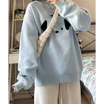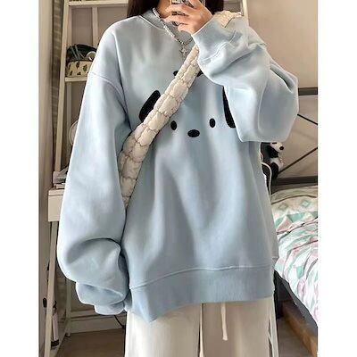 パ一カ一丸首衛衣女秋冬大型サイズ洋風減齢ゆとり学院風小衆百合上着長袖