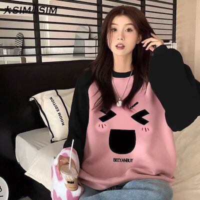パ一カ一韓国版ピンクの甘いラグランスリーブの衛衣女2024秋冬の新しいかわいい趣味減齢コートの上着ブーム