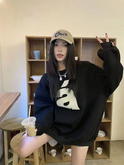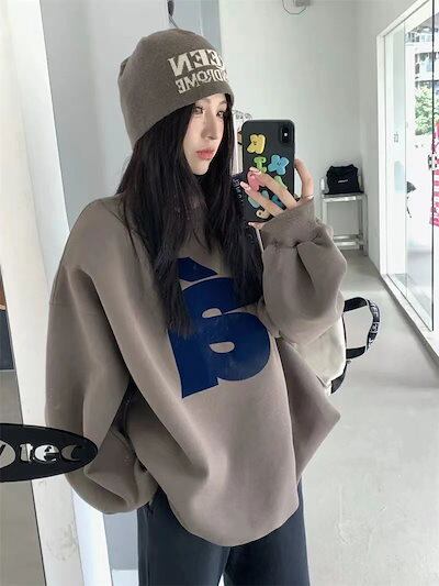 パ一カ一衛衣女秋冬韓国版2024新ゆったりミディアムカジュアルヘッダー長袖トップス