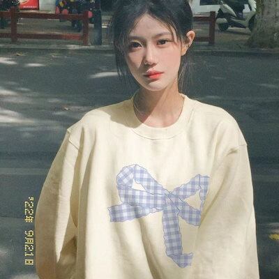 パ一カ一カップルのアメリカンレトロな港の味chicクルーネックパーカーレディース春と秋の薄手の高級感のある長袖トップス