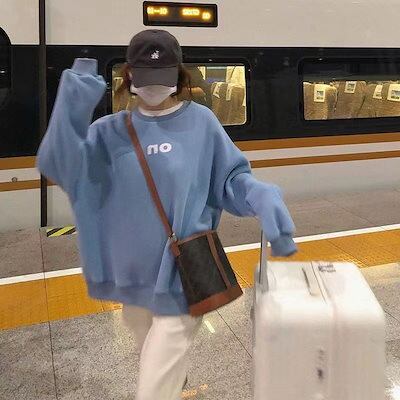 パ一カ一小柄ヘッダー丸首衛衣女秋冬2024新高級感揚げ街ゆったりダウン厚手トップスラッシュ