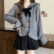 大きいサイズのレトロなリボンセーター婦人服秋冬高級感太っているmm小人数海軍ネックカーディガンニットトップス