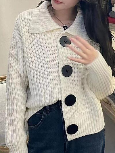 カボチャオレンジの開襟ニットカーディガンコート女秋冬フレンチレトロ高級感ゆったり