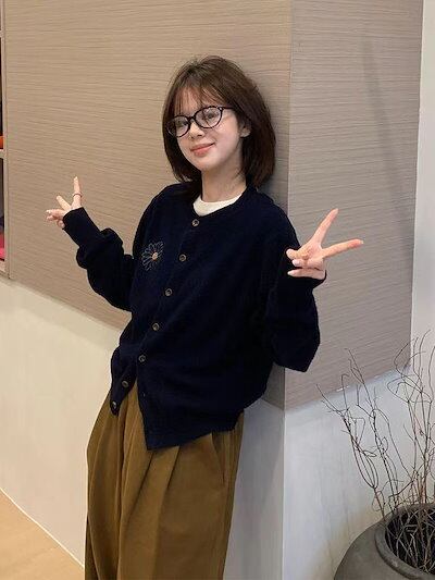 早秋のけだるさ風セーターカーディガンコート女2024春春秋小柄アウターニットトップス