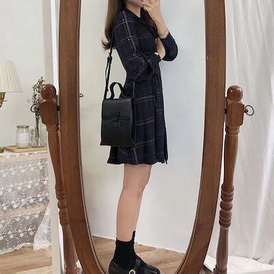 ティーラウンジフレンチチェックシャツワンピース少女学生かわいい韓国版ゆったり