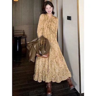 フレンチレトロな木耳の花柄ワンピース女2024春秋の新韓版気質着やせ減齢ロングスカート