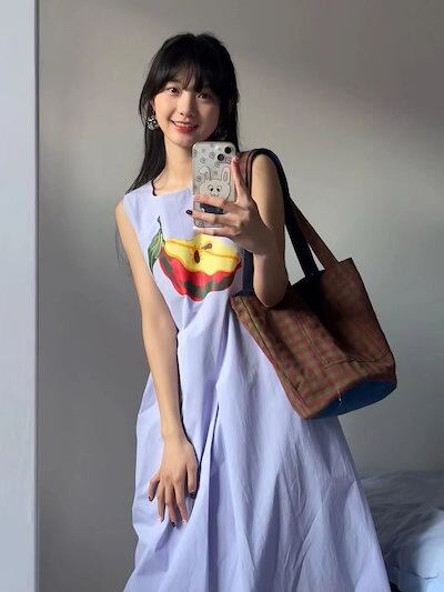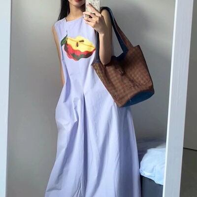 日系甘めガーリーパープルノースリーブタンクトップスカート2024夏新作A字ワンピースリゾートロングスカートins
