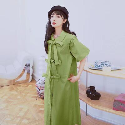 森ワンピース女夏2024新小人数デザインリボンシャツスカート純欲優しい乳甘い初恋スカート