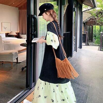 パッチワークTシャツワンピースラージサイズ婦人服デザイン感小人数ゆったりミディアム丈スリム半袖フィッシュテイルスカート