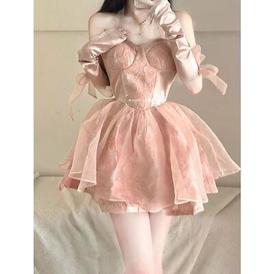 フレンチ純欲風甘めデザイン感ワンピース夏の新作ジャカードジョイントチュールバックワンピースins