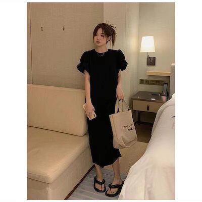 バブルスリーブワンピース女性の夏2024新型デザイン感小人数の痩せ見え遮肉セレブ風気質ロングスカート
