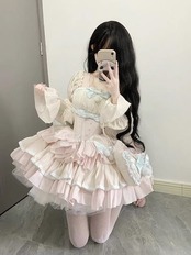 2024 ロリータ ドレス かわいい 姫スカートガーリーリボンウエストワンピース 女 コスプレ ワンピース ロリータワンピース