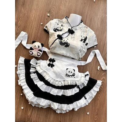 2024 ロリータ ドレス 可愛い少女 3点セット パンダプリントトップスケーキスカートメイドエプロンセット コスプレ ワンピース ロリータワンピース
