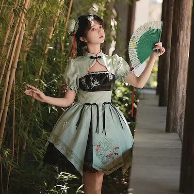 2024 ロリータ ドレス パーティードレス ドールスカート ワンピース チャイナドレス ワンピース 中華風 JSK OP コスプレ 古風 お祭り 花火大会 盆踊り 夏祭り 文化祭 学園祭 お花見 七