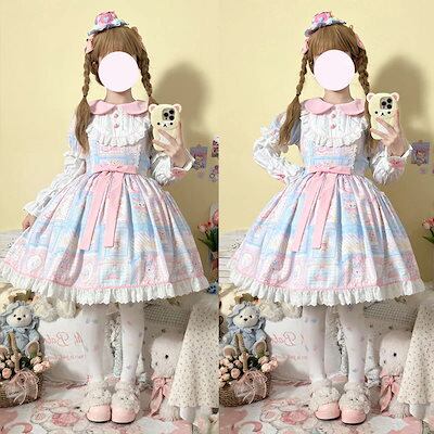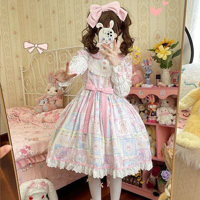 2024 ロリータ ドレス オリジナルデザインハニーラビットベアかわいい長袖opワンピース コスプレ ワンピース ロリータワンピース