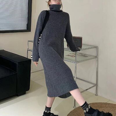 とーニットワンピース レディース セーター ニット ロング 膝丈 地 チュニック ニットワンピ ワンピース ロングセーター 秋冬 秋コーデ 冬コーデ 大人っぽい きれいトータルネック