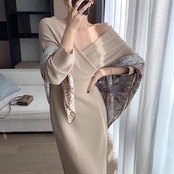 クロスニットワンピース ニット ワンピース マキシワンピース レディース 秋 冬 ゆったり 体型カバー 無地 カジュアル ハイネック 膝下丈 ワンピース レトロ ニットワンピ リブニット