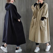 【2枚購入で 2oo円OFF! 】フード付き トップス セミロング マキシ丈 ウォーム 厚手 ゆったり 長袖ワンピース 高級感 着痩せ コート アウター ニットワンピース