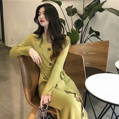 ミドル丈の気品あるボトムにペラペラのスカート子どもひざ丈ニットワンピース