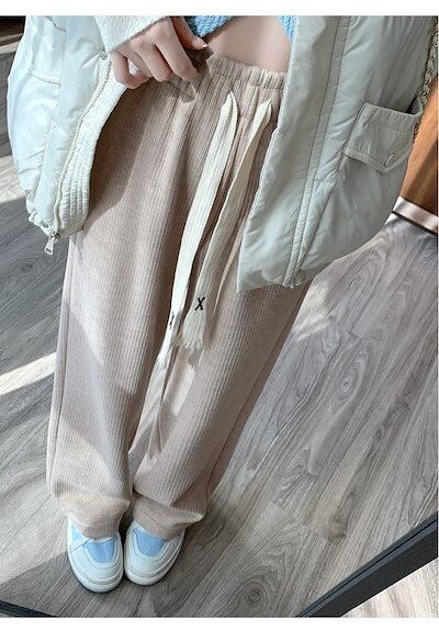 厚手 裏起毛 コーデュロイパンツ ワイドパンツ ロイワイドパンツ タイプ ストレートパンツ 韓国ファッション レッグパンツ レディース秋冬 ハイウエススキニーパンツ 脚長効果! ひんやりボトムス
