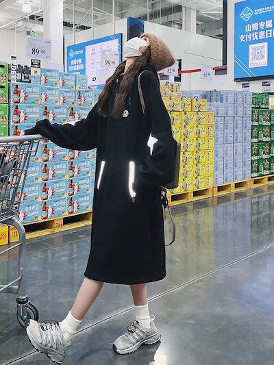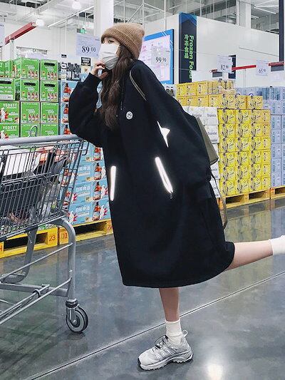 新作 秋冬 裏起毛 厚手 フード付き パーカー 長袖パーカー 可愛い ロング丈 スウェット カジュアル トップス ゆったり アウター 福袋