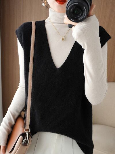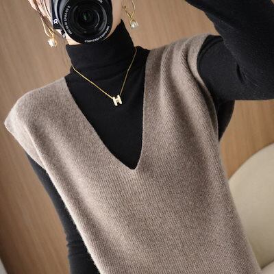 秋 冬 ニット ゆったり シンプルトップス ニットベスト レディース Vネックドルマンスリーブ タンクトップ 大きいサイズ 薄手 体型カバー ノースリーブニット AWアウター