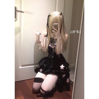 2024 ロリータ ドレス レトロギャル可愛い乙女感レースチェックキャミソールトップスハイウエストスカートセット コスプレ ワンピース ロリータワンピース
