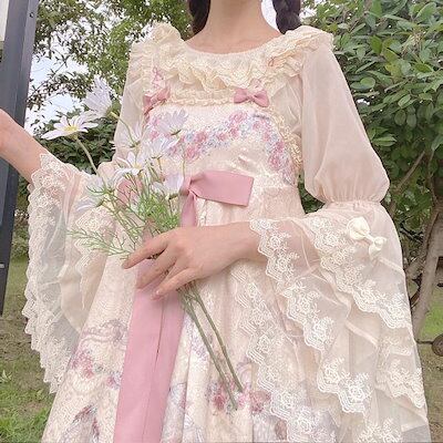 2024 ロリータ ドレス 可愛いワンピースインナー華やかレトロな袖ショート丈トップス女 コスプレ ワンピース ロリータワンピース
