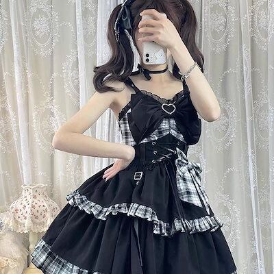 2024 ロリータ ドレス キャミソールワンピースワンピースダークキャミソールスカート コスプレ ワンピース ロリータワンピース