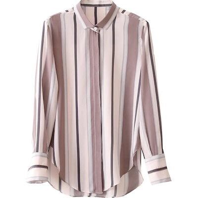 【3日間発送】 2024 新作 秋今っぽシアーシャツ ストライプシャツ女性秋の長袖シフォンボトムシャツトップス