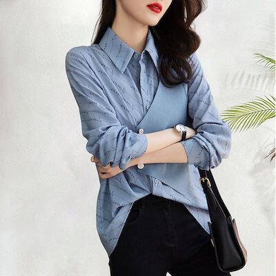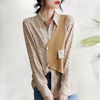 【3日間発送】 2024 新作 秋今っぽシアーシャツ ベージュシャツ女性初秋トップス 新しい長袖偽ツーピースブラウス