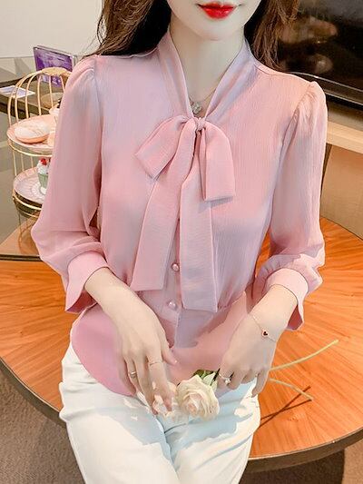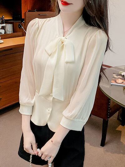 【3日間発送】 2024 新作 秋 シャツ OL リボンシフォン シャツ レディース 秋新作 7分袖 ブラウス