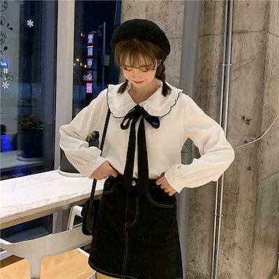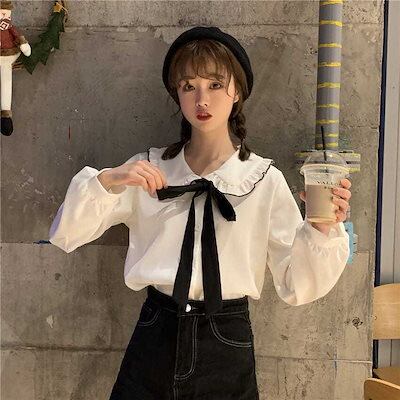 【3日間発送】 2024 新作 秋シャツ レディース 長袖 アカデミック レース本 ベビーネックのシャツ 学生 ゆとりがある 百掛けの上着 韓国ファッション