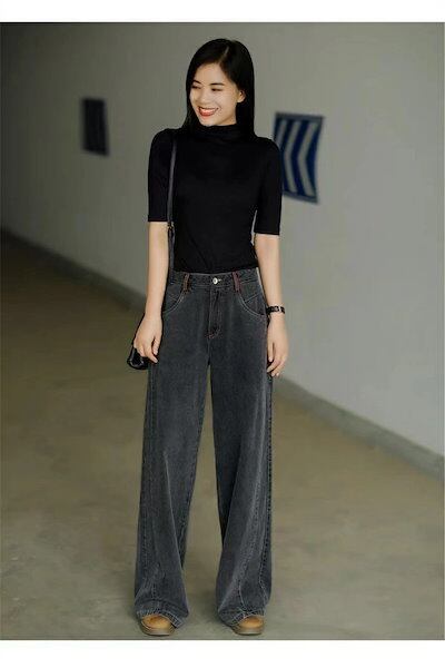 デニムパンツ ワイドパンツ デニム レディース 秋冬 パンツ ボトムス ズボン ワイド ロングパンツ ロング丈 無地 体型カバー ハイウエスト 大きいサイズ 着痩せ 美脚 通勤 ゆったり 上品 きれい